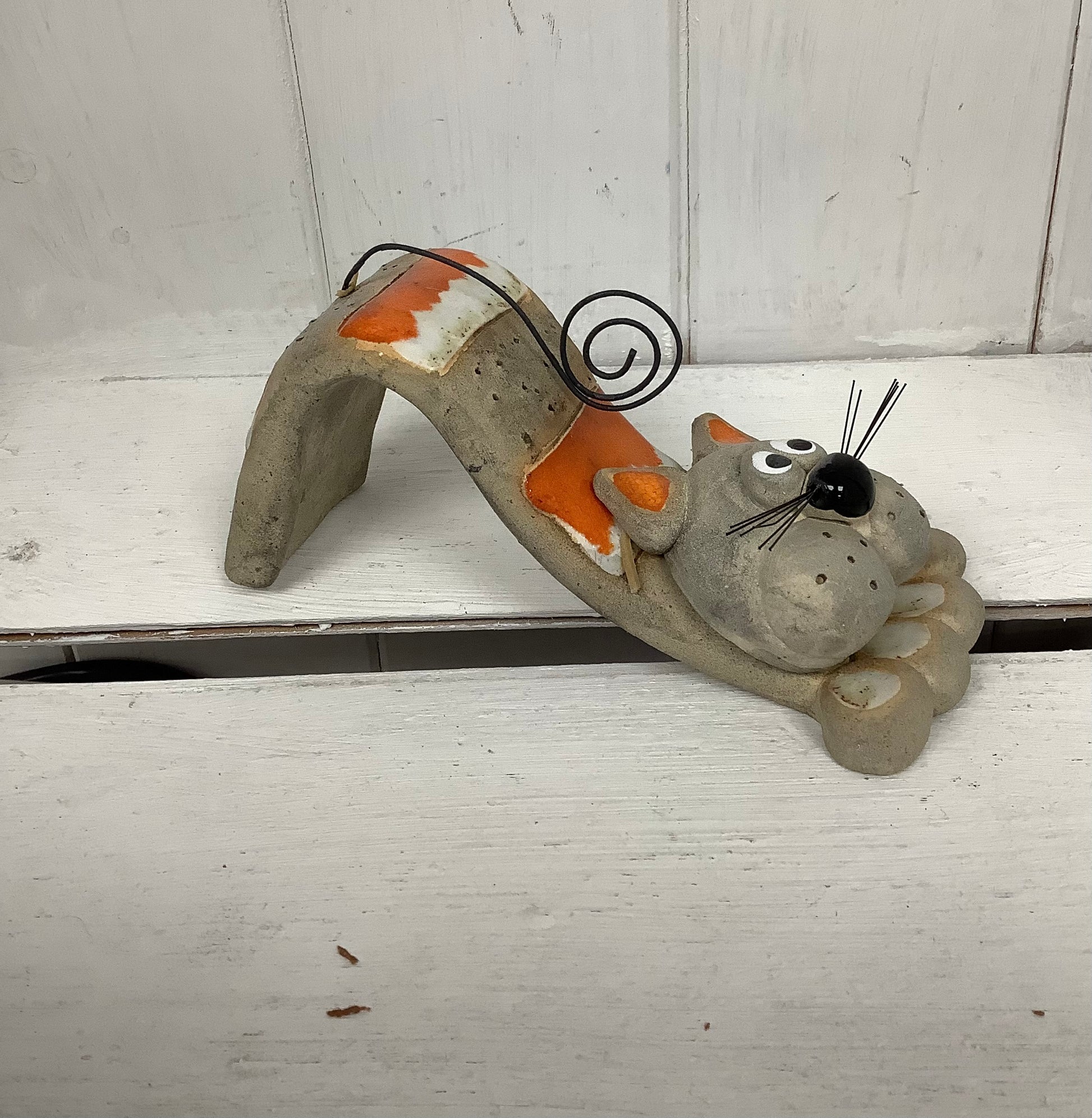 Meet our adorable Cubby Cheeked Chap, with fluffy jute whiskers and an endearing bent-over-backwards pose that's bound to charm any Cat Lover. Hand Sculptured with care in the Big Zee Studio, this little guy is more than a figurine; he's a heartwarming gift for your beloved ones. With his irresistible appeal, he's sure to bring joy to any space. Available in grey and orange, he adds a touch of whimsy to any collection. Embrace the artistry and love behind each handmade ceramic piece, and gift a piece of heartfelt affection with our Cubby Cheeked Chap from Big Zee Studio.