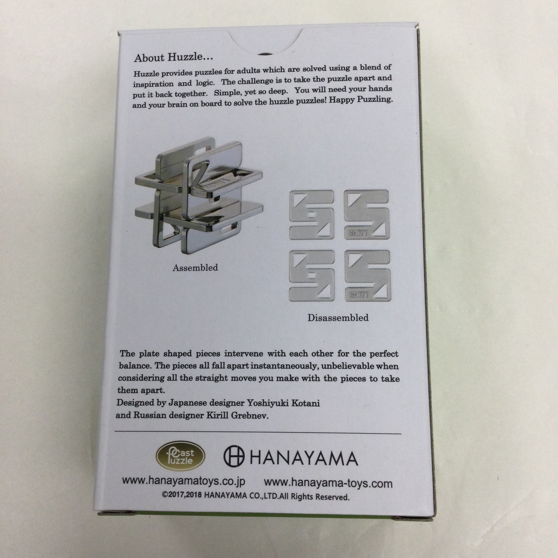 Huzzle provides puzzles for adults which are solved using a blend of inspiration and logic. The challenge is to take the puzzle apart and put it back together again.